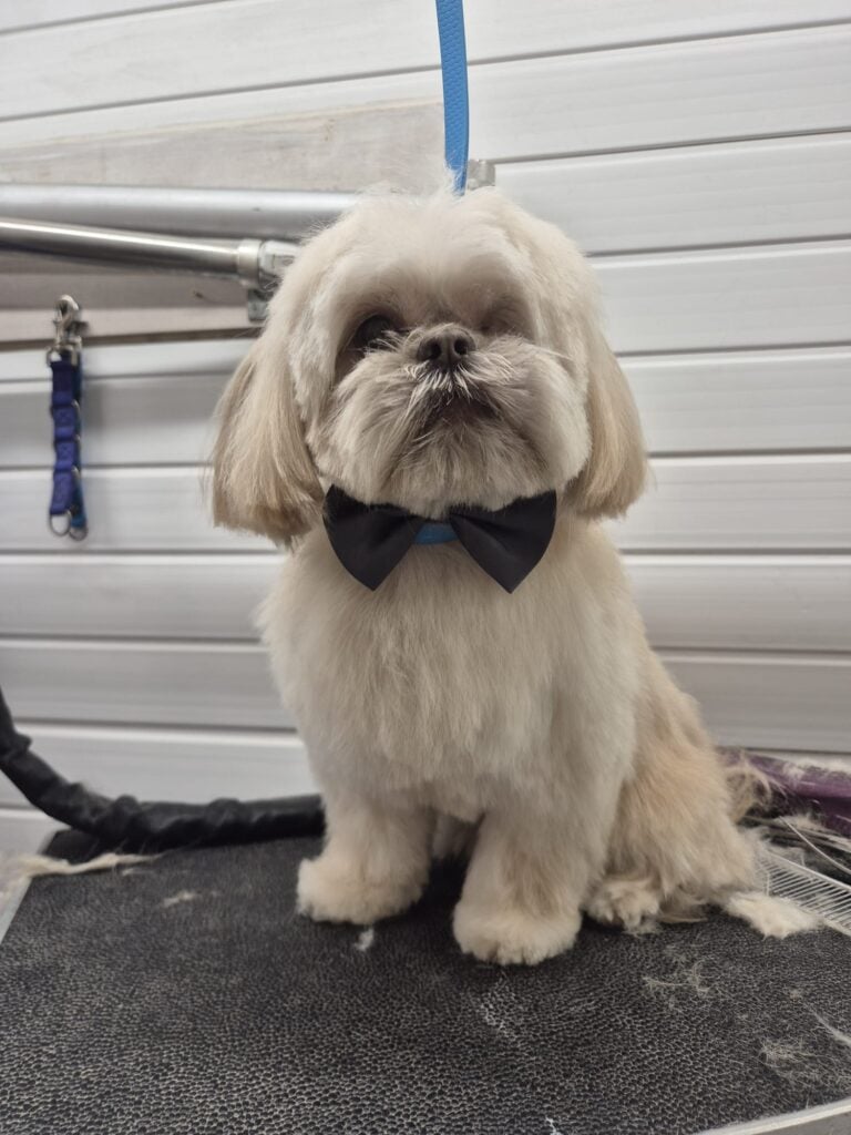 If your shih tzu has a puppy cut or teddy bear cut, you can stretch this to 8 weeks if you’re keeping up with brushing at home. Longer styles need more frequent appointments — every 6 weeks is sensible for a moderate length cut, and every 4 to 6 weeks if you’re maintaining a show coat.
